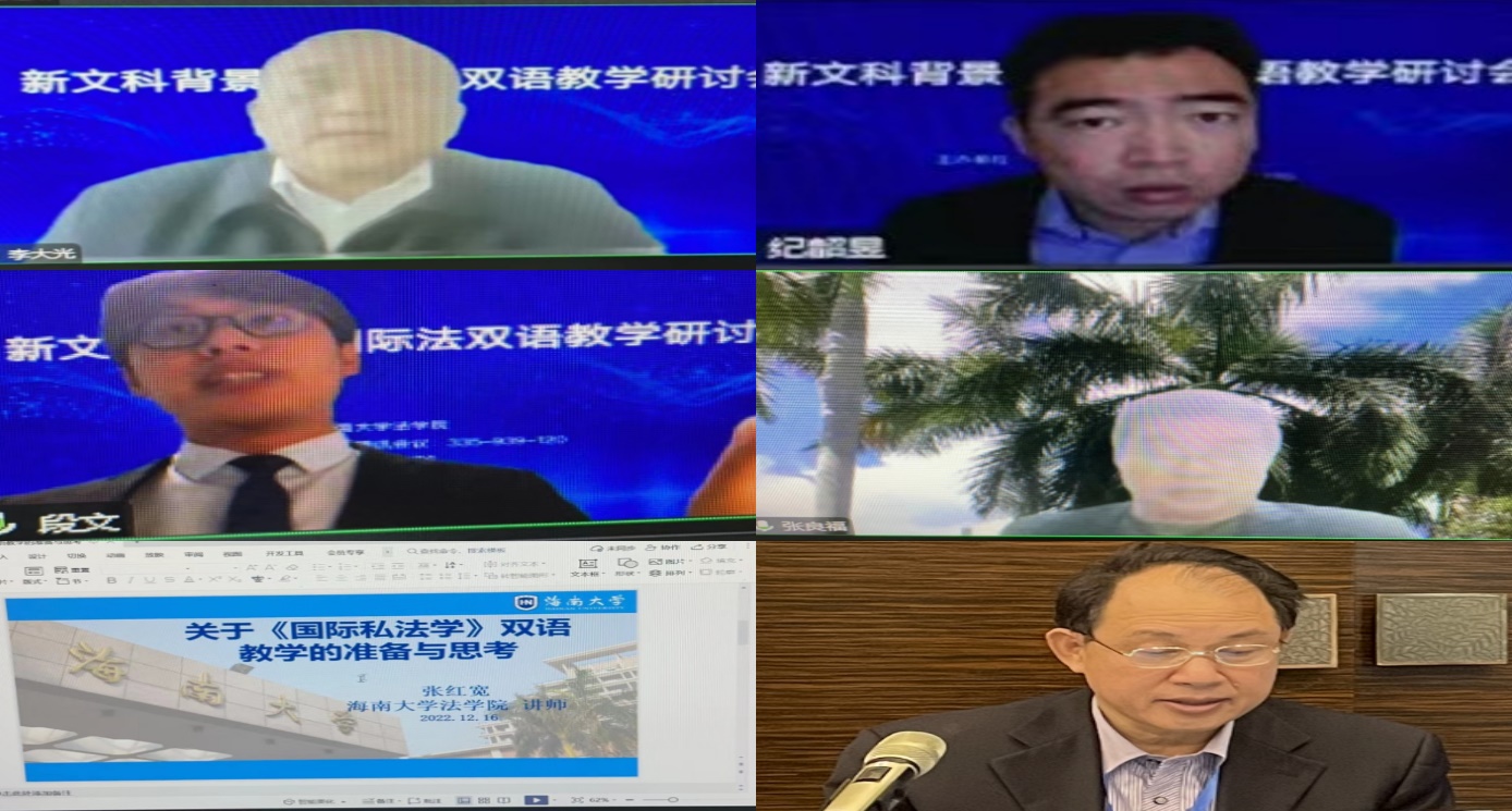 2022年12月16日下午,伟德国际bevictor1946(纪检监察公司)成功举办了“新文科背景下国际法双语教学研讨会”,本次会议分为主旨演讲、国际法双语教学改革与发展、国际法双语教学与模拟法庭等三个单元,分别由伟德国际bevictor1946副经理邓和军教授、伟德国际bevictor1946国际法教研室主任张丽娜教授、伟德国际bevictor1946李大光教授主持。来自校内外专家学者等20余人参加了此次会议。