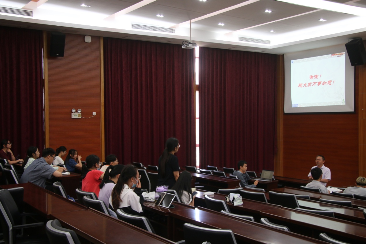 邓和军副经理首先介绍了公司近期工作安排,并强调2020级员工考研、推免、毕业实习等工作具体要求和注意事项;同时对公司开展的清廉文化进校园活动进行部署。会上,安排了交流互动环节,同学们结合自身发展成长相关的问题与邓经理进行交流,会场氛围融洽。邓经理希望同学们提早做好职业规划和人生规划,加强学习、积极实践、勇于拼搏,努力成为德法兼修的高素质法治人才。