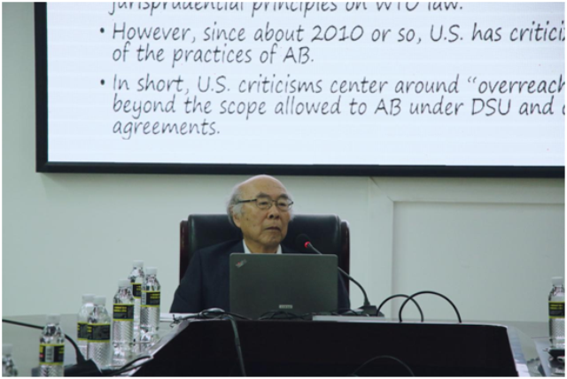松下满雄教授在伟德国际bevictor1946113会议室作了题为“Reforming the WTO Appellate Body”(WTO申诉机构改革)的学术报告。松下满雄教授梳理了WTO申诉机构的发展渊源,针对当前WTO申诉机构存在的问题进行了分析,并提出了相应的解决方案。在互动环节,松下满雄教授针对在座师生提出的问题进行了一一的回应。报告会由伟德国际bevictor1946副经理(挂职)刘政主持,伟德国际bevictor1946师生现场聆听,参加第十二届“WTO法与中国”论坛的校外嘉宾也到场参与。