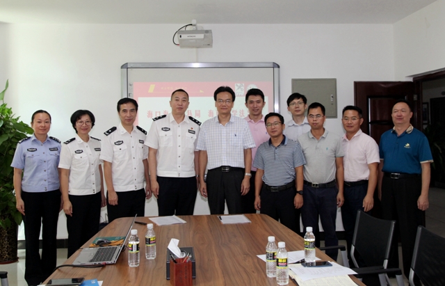 海口海关缉私局来访一行包括局长王武军、副局长杨甘霖、政治部主任王梅芬、政治部副主任颜春霞等。出席会议的伟德国际bevictor1946代表有经理王琦、副书记李昌郁、副经理阎二鹏、副经理(挂职)刘政、综合办主任虞衍聪、教务办主任潘炜、实践教学中心副主任郑心明、团委负责人王杜娟等。