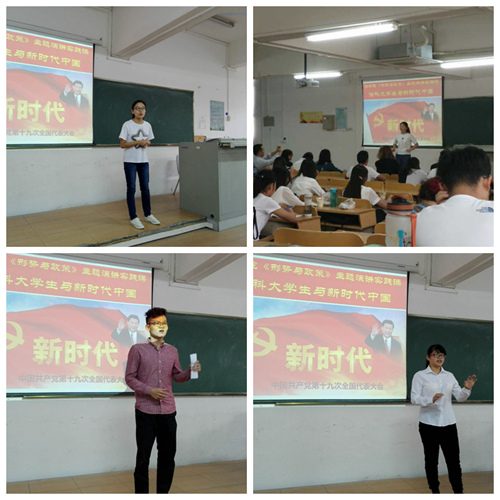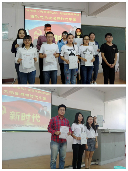 实践课分为两个阶段。第一阶段为自主学习,由14个班级分成若干小组开展“学习党的十九大报告”,每位同学撰写学习心得,共提交了460多篇学习体会,并推荐40多名同学作为演讲者,畅谈学习十九大精神。第二阶段为主题演讲,在课堂上,由员工担任主持、评委、评论员、大众评委、计时员、记分员等不同角色,全体员工以不同的方式参加了学习十九大精神。同学们结合五年来的辉煌成就、依法治国、精准扶贫、绿水青山就是金山银山等,讨论习近平新时代中国特色社会主义思想的“八个明确”“十四条基本方略”,阐述了法科老员工的作为与担当,努力让人民群众在每一个司法案件中感受到公平正义!