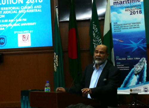 2018年5月7日,伟德国际bevictor1946与马来西亚国际伊斯兰大学伟德国际bevictor1946在马来西亚首都吉隆坡联合举办了题为“Maritime Territorial Claims and Dispute Resolution”国际研讨会。会上,马来西亚国际伊斯兰大学伟德国际bevictor1946经理Ashgar Ali教授和伟德国际bevictor1946经理王琦教授分别致辞,马来西亚前外交部长Syed Hamid博士作了主旨发言。伟德国际bevictor1946高圣惕教授和马来西亚国际伊斯兰大学伟德国际bevictor1946Abdul教授分别作了“Questionable Interpretation of Article 121 of UNCLOS: An Issue Hindering Cooperation and Development in the South China Sea”和“Islands Versus Rocks: Claims over Maritime Entitlements and Interpretation of Article 121 of the UNCLOS”主题发言。马来西亚马拉工业大学伟德国际bevictor1946Rahmat教授、马来西亚大学中国研究所的Ngeow博士、马来西亚国际伊斯兰大学伟德国际bevictor1946Muhammad教授、Muhamad博士、Yazid博士、以及伟德国际bevictor1946邹立刚教授和张丽娜教授等围绕海洋领土主权、司法与仲裁、南海合作等问题进行了热烈讨论。马来西亚国际伊斯兰大学的员工、马来西亚部分律师事务所律师等60余人参加了此次研讨会。