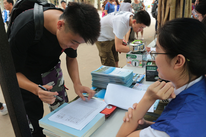 除了校领导、院领导的亲切慰问,员工干部的热情服务,迎新第一线上还有另外一道靓丽的风景——员工志愿者团队。今年公司迎新工作招募了40余名志愿者,特地为新生提供“一站式”报到服务,实行“一对一”首席接待员制度,尽最大力量为本科新生们提供简便温馨的报到服务。志愿者们身穿蓝色马甲,穿梭在新生报道的人流里,耐心引导新生完成报到工作,引导家长们稍作休息。在新生办完报到手续后,更是“抢”下他们手中的行李,一路带领到宿舍,积极介绍校园环境和老员工活,虽然满头大汗,但是脸上始终挂着热情的笑容。员工志愿团队展现出了伟德国际bevictor1946学子良好的精神风貌。