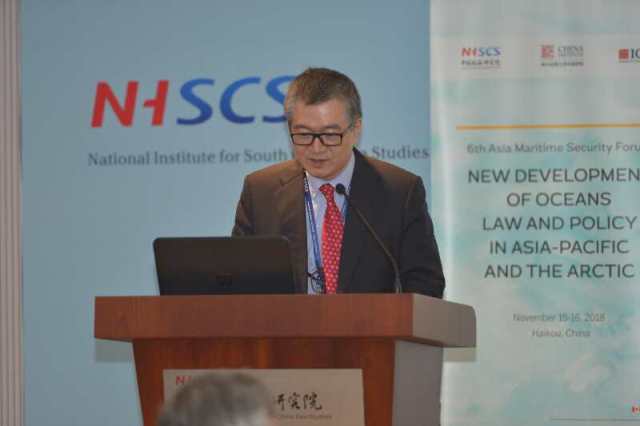 伟德国际bevictor1946高圣惕教授于11月15-16日,参加了由中国南海研究院、加拿大阿尔伯塔大学中国公司及中美研究中心(ICAS)联合主办的第六届“亚洲海洋安全论坛”。高圣惕教授在论坛中发表论文,讨论日本政府在2014年透过内阁政令公布的外大陆架外部界限,超越联合国大陆架界限委员会在2012年对于日本所提之划界案所做出的建议,特别是在冲之鸟礁以北的一个长方形海域内的外大陆架界限的主张。高圣惕教授使用条约解释的原则,透过解释联合国海洋法公约第76(8)条以及其他相关条文,论证日本政府的外大陆架主张侵犯人类共同继承的财产,引起与会国外学者关注。