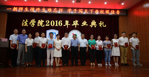 参加毕业典礼还有博士生导师邹立刚教授、王琦教授、陈秋云教授,经济法教研室主任刘云亮教授、民商法教研室主任董万程教授、李荣珍教授、周孝怀教授、张卫教授、赵振华教授,刑法教研室主任、2012级本科3班班主任黎其武副教授,唐茂林副教授、陈龙江副教授,2012级本科1班班主任魏德才副教授、2013级法学研究生班班主任李蓓老师、2013级法硕班班主任武良军老师、任洪涛老师等16位专任教师出席;综合办主任虞衍聪、副主任丁红宜,教务办主任李菁、秘书黄浩,学工办主任张晓凤、团委负责人何宏米,法硕中心秘书陈静、研究生管理办公室秘书潘炜,成教办唐红,伟德国际bevictor1946图书分馆王江琴、张晓燕,伟德国际bevictor1946员工会秘书董昭玲等12位行政人员和老师参加了毕业典礼。