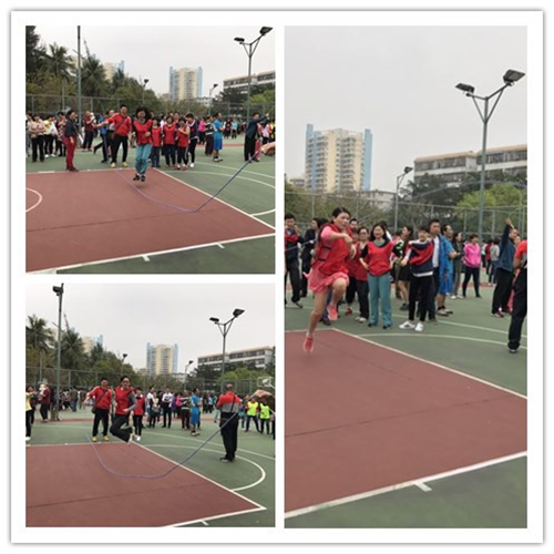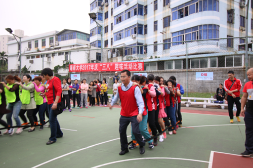 2017年3月7日下午,为庆祝第107个国际妇女节,丰富教职工文体生活,由校工会主办的庆“三八”趣味活动比赛在教工篮球场举行。伟德国际bevictor1946教师积极响应,踊跃报名,认真准备,组建了一支活力四射、实力强劲的代表队参赛!王丽娜书记、李昌郁副书记到场为大家加油打劲。本次活动由三个项目组成,分别是:“8”字跳长绳、巨人脚步和珠行万里。比赛现场,公司女教职工们团结协作、力争上游,兴高采烈地完成了三项趣味活动,充分展示了公司女职工的精神风貌,展现了女性之美,取得了较好的成绩。