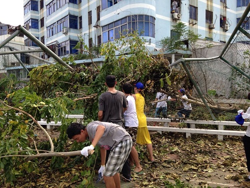 超强台风“威马逊”登陆后给公司造成严重损失,为尽快恢复校园整洁有序的环境,伟德国际bevictor1946于7月25日起再次发动留校师生参加校园清理工作,协助公司后勤部门及时做好垃圾清理和环境秩序恢复。公司党委书记王丽娜、副书记杨智平、辅导员李昌郁、史旭峰和20多名员工志愿者一起参加了劳动。大家冒着酷热,分工合作,齐心协力,对教工区篮球场周边、社科楼周边等处的卫生进行了彻底的清理。在伟德国际bevictor1946师生和全校师生的共同努力下,校园环境逐渐恢复了干净整洁的面貌。//www.hainanu.edu.cn