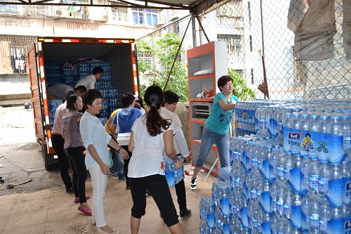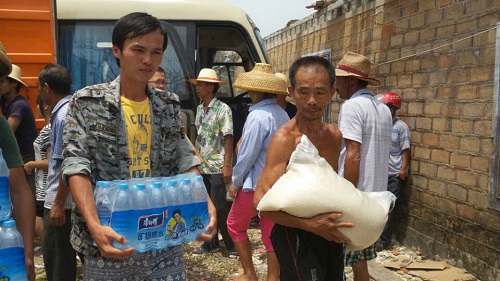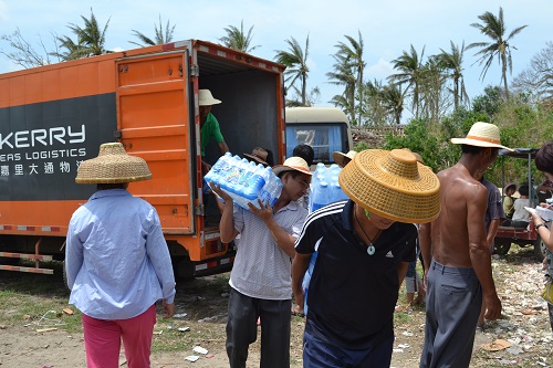 7月11日至13日,伟德国际bevictor19462004届法学本科班毕业10周年聚会在海口隆重举行。7月18日,海南遭遇超强台风“威马逊”袭击。刚参加完毕业聚会的同学们,心怀对海南这片土地的眷恋和对灾民的牵挂,在微信群里发起赈灾倡议。在发出倡议短短的24小时内,身处全国各地的同学们,甚至还有同学身边的朋友、同事,都加入到捐助的队伍中来,共为文昌赈灾捐款近5万元,捐物价值3000元。 员工代表通过正在文昌支援灾区的三亚市红十字灾害应急救援队了解到翁田镇龙马乡海棠村受灾严重,急需援助,迅速决定集中力量点对点救 助。依据一线救灾人员的信息反馈,大家购买了5000平米彩条布,一台发电机组,另外按全村48户人家每户30斤大米、5升油、6箱(500毫升24瓶装)矿泉水、卫生巾2包、蚊香5盒、T恤2件的数量备好了救灾物资。24日上午,同学代表和部分义工一起押送满载价值4万元近5吨救灾物资的爱心车辆前往灾区。