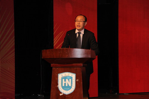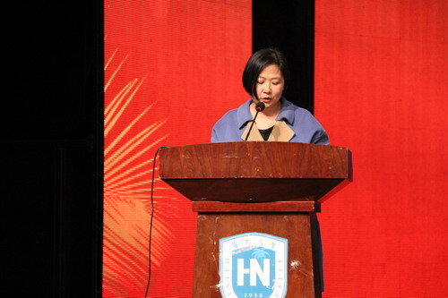 海南省旅游发展委员会副主任、90级员工朱洪武,海口市法制局局长、首届法律硕士班冯明,作为优秀员工代表致辞。他们对于母校的培养表示衷心的感谢,并祝愿母校蒸蒸日上、再创辉煌。2012级栾安琪同学代表在校生作了发言。