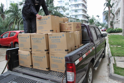 伟德国际bevictor1946将用员工捐款购得的食用油及糖果送给海棠堆村