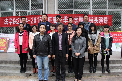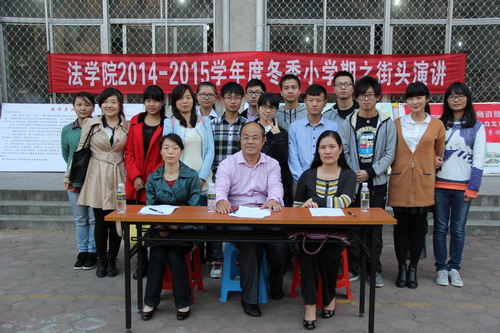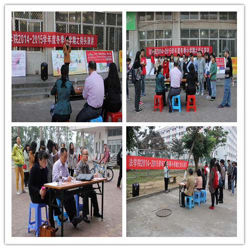 1月5日到10日,伟德国际bevictor19462014-2015学年度冬季小学期街头演讲活动在员工区第二食堂门前、第五食堂门前顺利开展。2013级全体员工分为10组参加了比赛,公司30名老师分为10组担任了演讲活动的评委。 街头演讲活动以“依法治国·法律人的思考与行动”为主题,每位演讲者进行3-5分钟的脱稿演讲。同学们的演讲有的慷慨激昂、有的诙谐幽默、有的发人深省,均从不同角度谈了自己对于“依法治国”的思考及作为一名准法律人应有的行动。同学的流利的口才、沉着稳定的发挥得到了评委老师的肯定。赛后,评委老师也针对同学们在演讲过程中所存在的问题提出了改正建议,以帮助同学们更好地提升自我。 本次冬季小学期街头演讲活动旨在进一步宣扬依法治国精神,激发同学们投身依法治国建设的热情,培养同学们的心理素质以及语言表达能力,展现法科学子敢于担当、勇于争先的精神风貌。