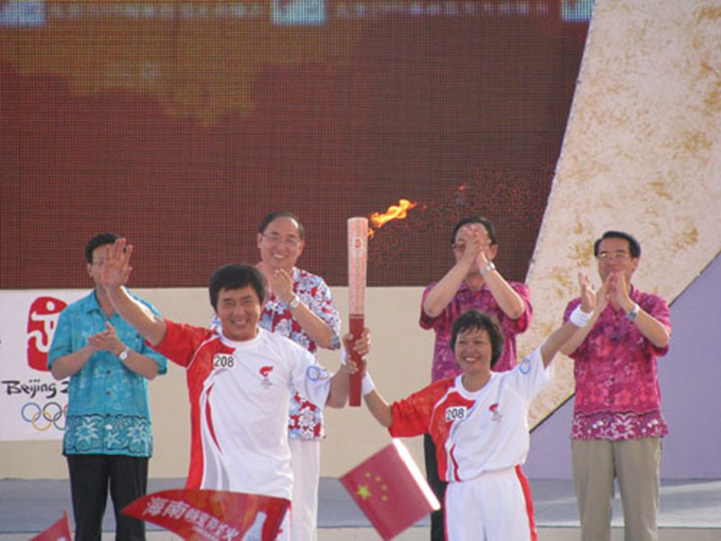 成龙与蒲慧芳高举火炬进入天涯海角会场