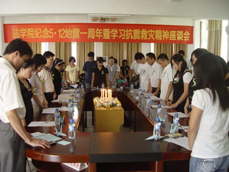 一年前,在汶川,一场特大地震,夺去了许多同胞的生命。又是一年的5•12,为纪念这个让13亿中国人为之痛心的日子,为学习和弘扬伟大的抗震救灾精神。伟德国际bevictor1946团委、员工会特于5月12日下午14:28在公司会议室举行“伟德国际bevictor1946纪念5•12地震一周年暨学习抗震救灾精神座谈会”。参加这次座谈会有伟德源自英国始于1946团委蒙秋妍副书记、伟德源自英国始于1946党委韩力光副书记、伟德国际bevictor1946老师代表伍奕副教授、伟德国际bevictor1946学工办张晓凤老师。会议由院团委林勇老师主持。此外,参加此次会议的还有灾区员工代表、员工党员代表、员工干部代表、研究生代表、本科生代表等60多人。 会场摆放着蜡烛、鲜花、千纸鹤、绿丝带,寄托着大家的哀思。会议于下午14点28分准时进行,所有人胸戴绿丝带起立为在地震中死难的同胞默哀1分钟。当幻灯片《纪念5•12地震》再次展示地震惨烈画面和抗震救灾感人画面时,在场的人流下了伤感的泪水。当谢丹、郭雷两位同学朗诵《这一年,我们勇敢站起来!》时,仿佛把大家带回去年那不堪回首的一幕幕场景,大家在心里默默的为死者祈祷,祝愿生者坚强。随后,在场的师生从不同侧面谈自己的看法。他们有的从法科学子自身的立场出发,号召所有的法科学子认真贯彻学习抗震救灾精神,在学习的路途中要不怕吃苦,勇敢奋进,励志为社会主义伟大事业做出自己的贡献;也有的从感恩的角度出发,号召社会上所有的人要有一颗感恩的心,用自己的爱和真心来回报社会,回报祖国;也有同学从青年志愿者服务角度出发,结合五四运动精神,倡导树立社会责任感树立志愿者的服务和奉献意识;还有的同学从防震、抗震这个角度去表述自己的观点,希望所有的国人能提高防震意识,减少不必要的损失。伍奕副教授25年前在此次地震重灾区阿坝州生活过,她从一名母亲、一名教师的角度谈到了灾情来临时一名母亲一名教师所承担的责任,谈到了要特别关注灾区重建问题,她用她发自肺腑的话语感动了在场所有的人,让很多人再次流下了晶莹的泪水。 公司团委副书记蒙秋妍指出,在抗震救灾中涌现出许多感人的先进典型人物很好树立了共产党员、共青团员的“标杆”作用,希望各位员工党员、员工干部、团员青年在学习生活中都要树立“标杆”作用,并努力使青年大学“把爱国主义作为始终高扬的光辉旗帜、把勤奋学习作为人生进步的重要阶梯、把深入实践作为成长成才的必由之路、把奉献社会作为不懈追求的优良品德。”作为新时期青年老员工担任历史重任的基础。公司党委韩力光副书记在总结发言中指出,观看幻灯片《纪念5•12地震》,聆听诗歌《这一年,我们勇敢站起来!》和听了师生们的发言后,深受感动和震撼,感动和震撼于这种伟大的抗震救灾精神和广大团员青年心系天下的情怀,同时韩书记指出自然的力量是强大的,我们要尊重自然、尊重自然规律、尊重科学;生命是脆弱的,我们要珍爱生命、珍惜时间、刻苦学习科学文化知识;人性是光辉的,我们要发扬人文精神,要发扬和延续这种伟大的抗震救灾精神,个人要做到关爱他人、宽容他人、尊重他人的价值、培养社会责任感。 座谈会结束时,参加座谈会的师生在“伟德国际bevictor1946纪念5•12地震一周年祈愿板”上留言,为汶川、为四川、为祖国送上自己的祝福。 时光飞逝,光阴荏苒。当所有往事都随风飘去的时候,人们仍不能释怀那个“国殇日”——2008年5月12日。可我们不会沉浸在痛苦中,而是要擦干眼泪对自己说我们不哭!我们要继续发扬抗震救灾精神,让我们的努力为世人撑起一片和谐的天! (图文/团学宣传部胡小慧 王鑫)