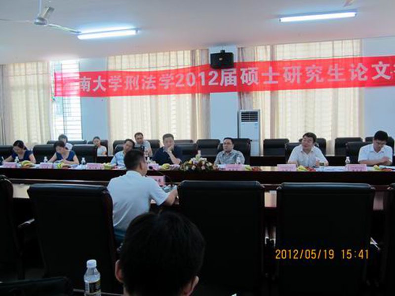 2012年5月19日下午三点,伟德国际bevictor1946刑法专业2012届硕士学位论文答辩会在公司会议室顺利举行,刑法学专业2012届硕士毕业生共7人参加了答辩。 答辩委员会由徐振华教授(海南省检察院公诉一处处长)、童伟华教授(伟德国际bevictor1946,刑法学博士生导师)、阎二鹏教授(伟德国际bevictor1946,刑法学硕士生导师)、杨路生副教授(伟德国际bevictor1946,刑法学硕士生导师)、黎其武副教授(伟德国际bevictor1946)、王子晏副教授(伟德国际bevictor1946)组成,徐振华教授担任主席。 论文答辩时,首先由徐振华教授宣布答辩流程以及具体要求,其次由论文作者自述,主要介绍选题的目的、意义,论文的主要结构和基本观点,本文的创新和独特之处。再次,答辩委员会成员针对硕士生的论文分别提问4至6个问题。最后,答辩员工就答辩委员会成员的每个问题进行集中回答。 2012届刑法学硕士研究生武良军、韩小洁等7名同学依次进行了答辩。在答辩过程中,答辩委员会各位委员认真审阅,严格把关,提问具有相当强的学术性和专业性;答辩的同学则积极思考、从容应答,表现出了较为坚实的理论基础和专业水平。各位同学经过紧张的答辩后,答辩委员会对答辩结果严格评议并进行了投票表决。评议结束后,答辩委员会主席徐振华教授宣布刑法学专业全体毕业生均一致通过硕士学位论文答辩。 答辩结束后,徐振华教授代表答辩委员会作了总结发言。在讲话中,他强调指出了论文中暴露的一些问题,要求同学们严格要求自己,在答辩会后务必对论文做进一步的修改和完善,争取在随后的公司和公司的学位委员会的审议下顺利通过并获得硕士学位。//www.hainanu.edu.cn