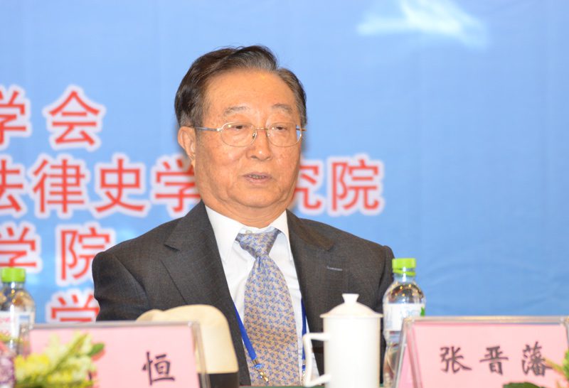 中国法律史学会顾问、中国政法大学终身教授张晋藩发言。他以《中国法律的传统与固有国情》为题,从古代中华法系的特点、规律入手阐述了中国古代法律与国情的基本关系。他强调,国情与法的结合是中国法制史研究的一个重要方向,希望法制史学在这个复杂宏大的课题上有更多的探索。