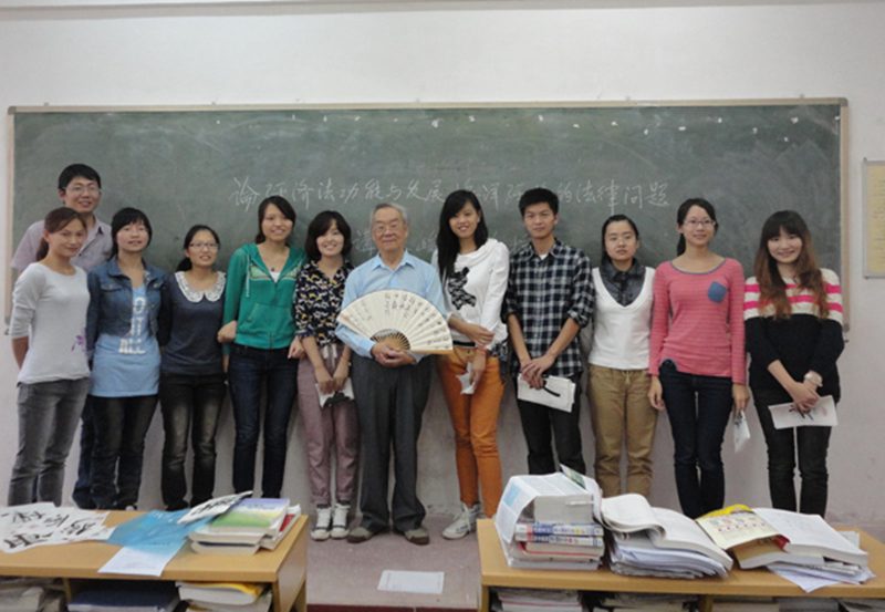 11月12日,伟德国际bevictor1946原经理王峻岩教授应邀为公司研究生做了一场题为《论经济法功能与发展海洋经济的法律问题》的讲座。 在本次讲座中,王教授根据自身几十年对经济法的研究,阐述了自己独到见解,主张经济法即是国家管理经济的一种职能体现。对于经济法的功能,王教授认为经济法在国有资产管理、宏观经济调控、市场经济监管、国民经济保障、国家科技发展产业政策、以及环境资源利用和保护等方面,充分发挥和展示其功效。在论及发展海洋经济方面,王教授展望我国海洋资源开发利用前景,尤其是南海资源富饶,强调海南发展海洋经济发展大有可为。海南有必要充分运用经济法律规范,遵循资源配置优化、经济效益优先、综合发展和利益兼顾等的经济法基本原则,规范海洋产业开发主体资格方,规范海洋经济发展路径、模式,同时要注重协调在海洋经济发展过程中权利义务关系等等。 王教授讲座幽默诙谐,结合了自身经历和研究成果与同学们进行了交流,鼓励同学们好好学习,多读好书以拓展自己的视野。讲座结束后,王教授还给每个同学送自己的书法作品以资鼓励,并与同学们合影留念。公司刘云亮教授主持今天下午的讲座,主要介绍了王教授的主要学术著作、代表观点及其学术工作生涯等,并主持就讲座的内容与王教授、同学们进行相互学术交流。