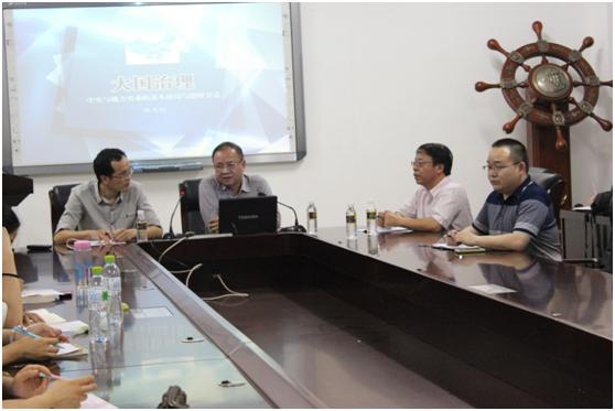 熊文钊教授从中国的国情出发,结合“京津冀一体化”等社会热点问题,分析了中央与地方关系的重要性和复杂性,进而阐述了我国中央与地方关系的基本格局,即一体多元或者多元一体,其中的“一体”是指国家的统一性,我国是单一制国家,而“多元”强调的是分权,其具体表现为立法体制的多极化、中央与地方财权的划分、民族区域自治制度、特别行政区域制度、中央与地方经济关系的多元化、经济特区以及跨行政区域的新经济体。接着熊教授阐述了中央与地方关系处理的基本原则,这些原则包括一体性与多元性相结合、集权与分权相平衡、公民权利决定公共权力、地方自治、行政区划与经济区域相协调、行政区域与司法区域相分离、公共权力成本最小以及中央与地方关系法制化。在中央对地方监督与控制的方式上,熊教授认为其应该包括立法监控、行政监控、司法监控、财政监控、人事监控以及政策监控者六个方面。他主张要构建中央与地方良性的互动机制,即实现“强国”、“虚省”、“实县(市)”的内在关联,这种互动机制具体包括以下内容:单一制国家结构形式下确立中央统一的领导权威、建立中央与地方合理的分权体制、推行和完善地方自治制度、完善中央对地方的监督控制体制、调整行政区划层级以构建良性互动机制、建立中央与地方以及地方与地方之间的良性互动和建立独立的司法体制。最后熊教授还从加强中央与地方的立法以及确定中央与地方事权的划分规则等角度阐述了中央与地方关系的法律保障。近两个小时的报告结束后,熊教授与员工就司法权属性等问题进行了探讨与交流。熊文钊教授的报告资料详实,讲解深入浅出,对中央与地方关系这一宏达叙事进行了生动的分析,在场的师生受益匪浅。