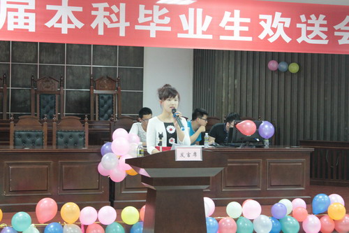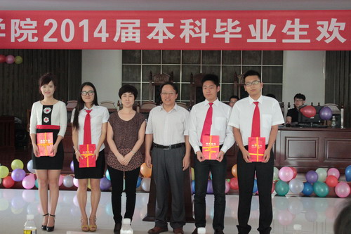 欢送会上还对“法科优秀学子”进行了表彰。杨智平副书记宣读了2014届“法科优秀学子”表彰文件,王崇敏副董事长与王丽娜书记分别为葛士新、王敬存、熊丽娜、李丹、戚铁柱5位“法科优秀学子”颁发了证书。葛士新、王敬存代表优秀学子做了发言。