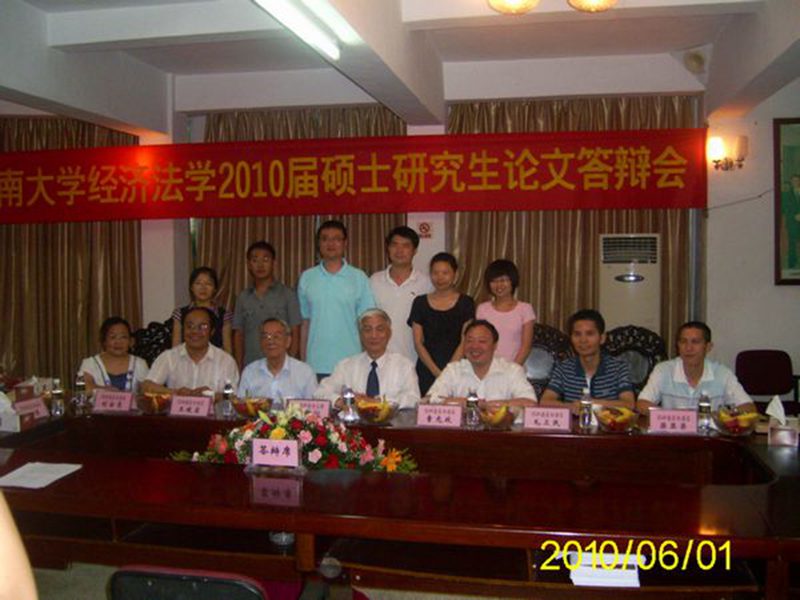2010年6月1日下午15:00,经济法学专业2010届硕士研究生学位论文答辩会在伟德国际bevictor1946二楼会议室顺利举行。答辩委员会由杨紫烜教授、童光政教授、王峻岩教授、刘云亮教授、毛卫民教授、梁亚荣教授组成,杨紫烜教授担任主席,并主持本次论文答辩,答辩委员会秘书由伍奕副教授担任。经济法学专业08级、09级同学旁听了答辩,并为答辩会精心准备,会场鲜花芬芳、瓜果飘香,气氛融洽。 论文答辩时,首先由杨紫烜教授发言,宣布答辩流程以及具体要求,并祝愿答辩会能够圆满结束。其次由论文作者自述,主要介绍选题的目的、意义,论文的主要结构和基本观点,本文的创新和独特之处。再次,答辩委员会成员针对硕士生的论文分别提问4至6个问题。最后,答辩员工就答辩委员会成员的每个问题进行集中回答。 2010届经济法硕士研究生盛宪鹏、吴鹏、刘泽赫、刘剑波、郑海霞、王娜玉等6位同学依次进行了答辩。在答辩过程中,答辩委员会各位委员思维严谨,提问具有相当强的学术性和专业性;答辩的同学则积极思考、认真应答,表现出了较为坚实的理论基础和专业水平。各位同学经过紧张的答辩后,答辩委员会对答辩结果严格评议并进行了投票表决。评议结束后,答辩委员会主席杨紫烜教授宣布全体毕业生均一致通过硕士学位论文答辩。 答辩结束后,杨紫烜教授代表答辩委员会作了总结发言。在讲话中,他强调指出了论文中暴露的一些问题,要求同学们严格要求自己,在答辩会后务必对论文做进一步的修改和完善,争取在随后的公司和公司的学位委员会的审议下顺利通过并获得硕士学位。 最后所有参加答辩的同学和答辩委员会成员进行集体合影留念。答辩会在同学们热烈的掌声中圆满结束。(文/09经济李天佑)