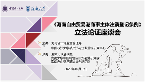 2020年10月19日上午,海南省市场监督管理局和中国政法大学破产法与企业重组研究中心主办,伟德国际bevictor1946、伟德源自英国始于1946中国特色自由贸易港研究院与海南自由贸易港法律创新团队承办的“《海南自由贸易港商事主体注销登记条例》立法论证座谈会”,在海南新燕泰大酒店天恒厅成功举办。