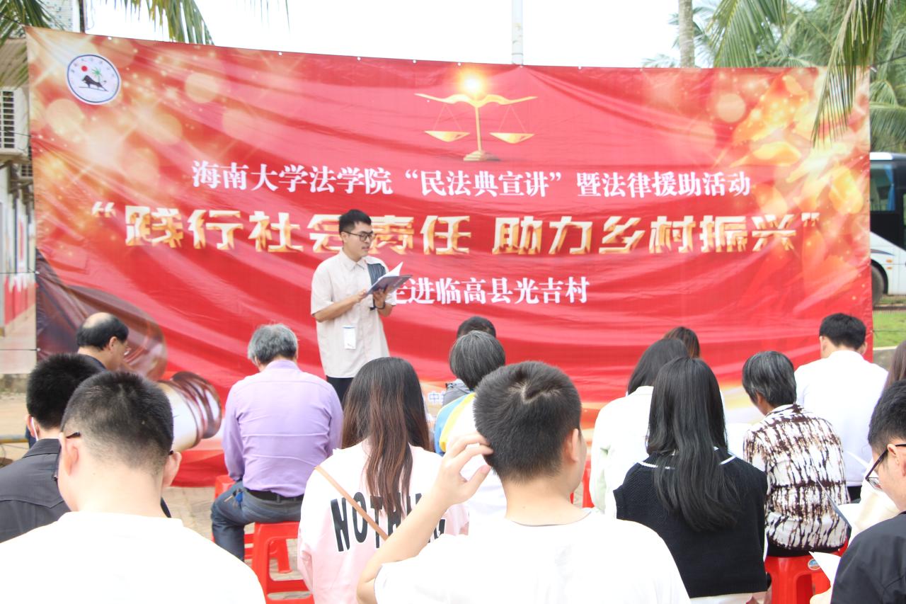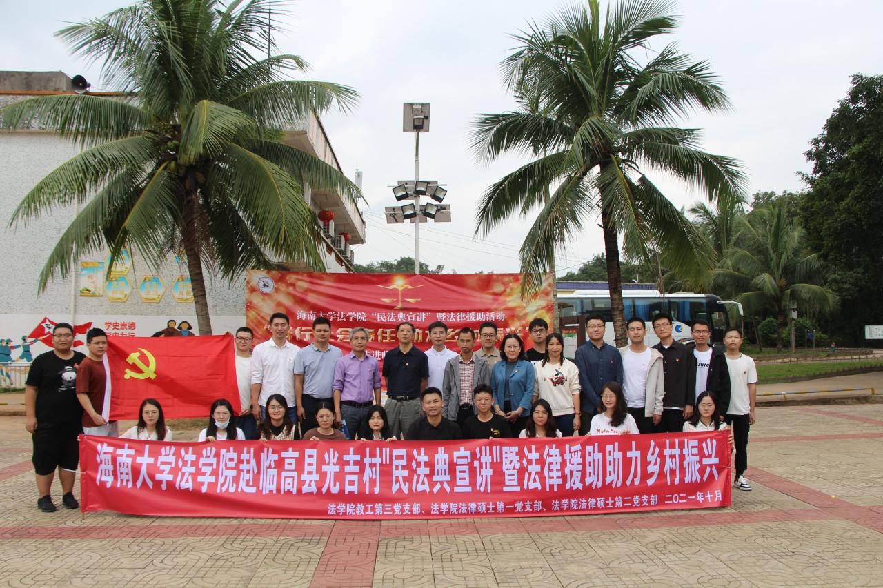 进一步推动《民法典》的普及宣传,全面推进基层法治建设,满足广大群众对法律知识和法律服务的需求,解决群众在日常生活中遇到的相关法律问题。10月26日上午,伟德国际bevictor1946教工第三党支部、伟德国际bevictor1946法律硕士第一党支部、伟德国际bevictor1946法律硕士第二党支部共赴临高县光吉村进行“民法典宣讲”暨践行社会责任法律宣讲活动。
