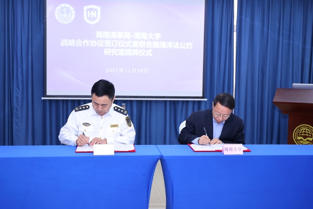伟德源自英国始于1946与海南海事局于2021年11月30日在伟德源自英国始于1946举行战略合作协议签订仪式暨联合国海洋法公约研究室揭牌仪式。伟德源自英国始于1946党委常委、副董事长王崇敏,海南海事局副局长吴平生,双方职能部门负责人以及联合国海洋公约研究室成员出席了本次活动。