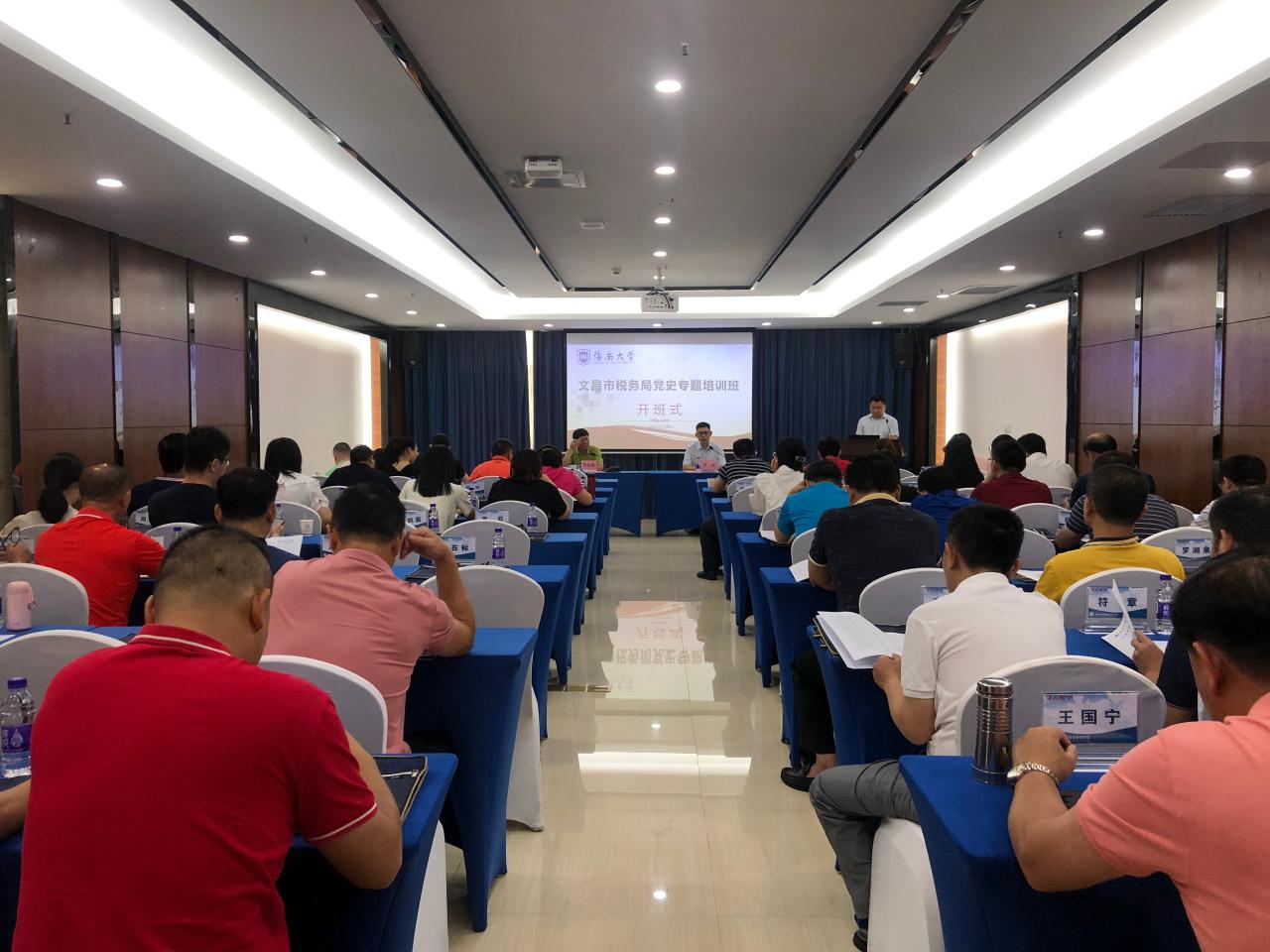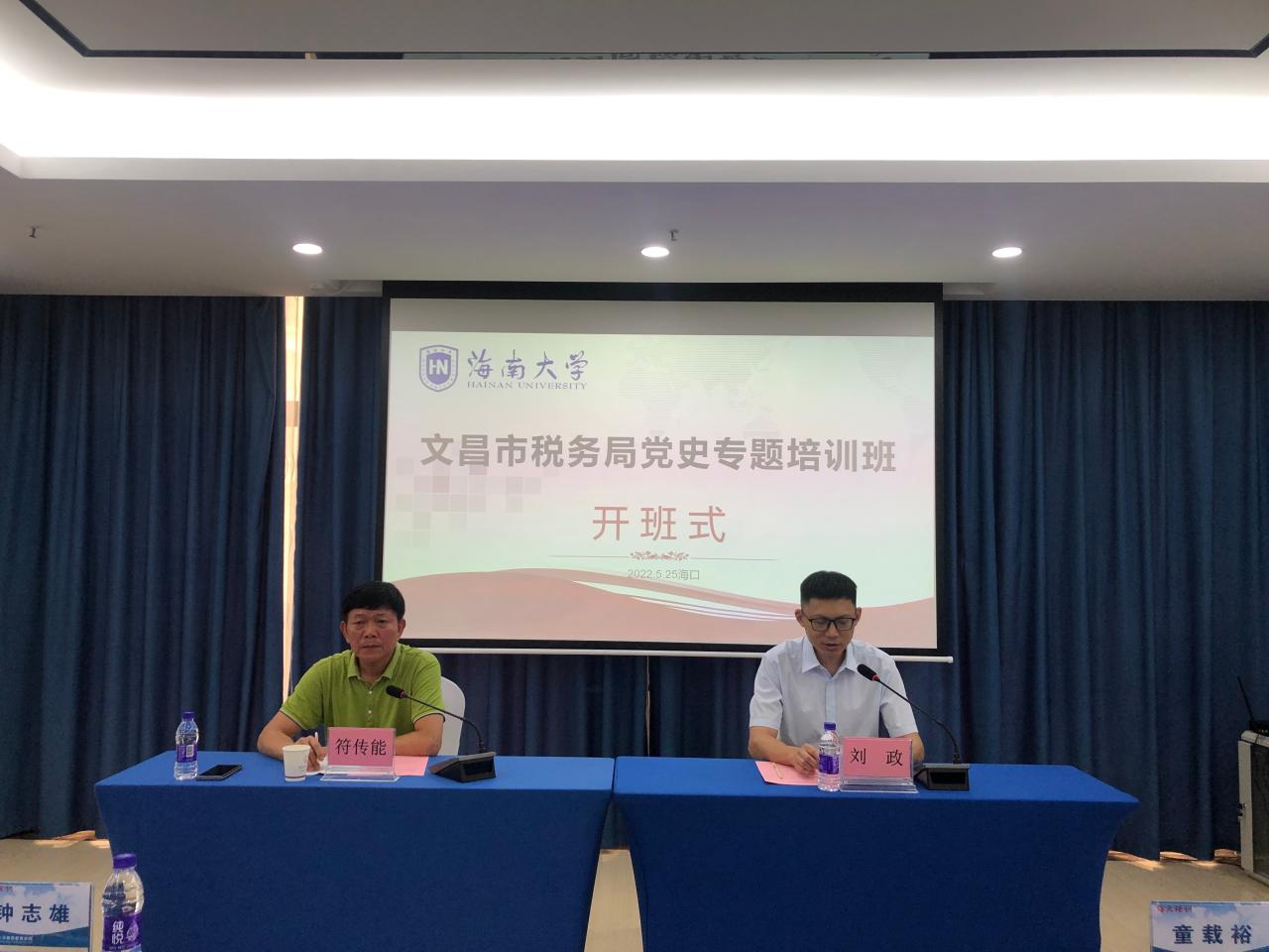 2022年5月25日上午,为期3天、由伟德国际bevictor1946承办的“文昌市税务局党史专题培训班”在伟德源自英国始于1946海甸校区顺利开班。文昌市税务局机关党委书记符传能,伟德国际bevictor1946副经理刘政出席开班式,。参训学员来自文昌市税务局业务骨干共计50余人。