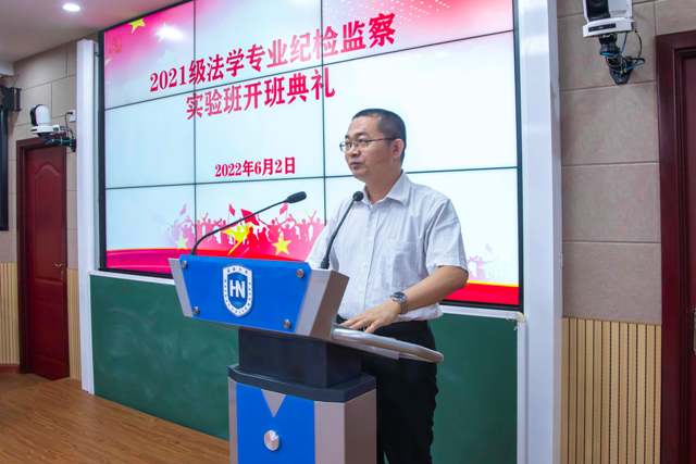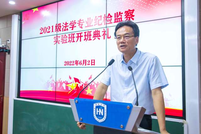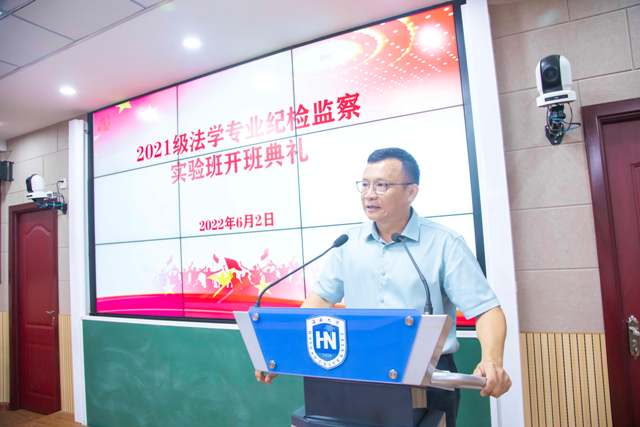第八项,郑尉杰书记讲话。郑尉杰书记主要介绍了纪检监察的现实情况和发展前景。他提到,纪检监察法专业是一个有故事的专业,从中共五大设立党的监察机构,到后来监察机关和各级检察机关的设立,都体现了国家对纪检监察的重视不断提高。在实际中,我国纪检监察人才需求量大,但是开设此特色专业的高校数量有限,所以海大伟德国际bevictor1946设立纪检监察实验班是有独特眼光的,是先进的。但是郑尉杰书记也深刻了解学好纪检监察专业的不易,为此他对同学们提出以下几点标准:第一,政治过硬、本领高强。纪检监察是使用国家公权力的行业。从事此类职业,不能为己谋私,要时刻牢记为人民、为社会、为国家谋公平,谋正义。第二,志存高远、刻苦钻研。纪检监察法是一个庞大的体系,只有同学们肯钻研才能出真成果。第三,要做心怀国之大者。面对新时代,同学们要以自身所学投身国家建设,投身自贸港建设,做一个有用的人才。