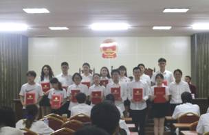 表彰大会在全场起立高唱团歌《光荣啊,中国共青团》中开始。