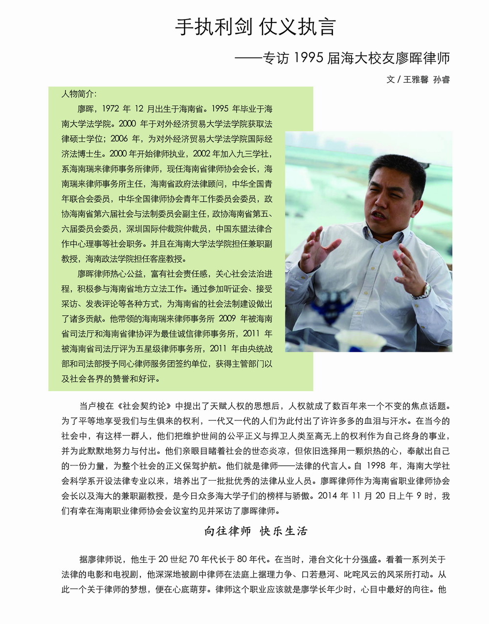 手执利剑 仗义执言 ——专访1995届海大员工廖晖律师