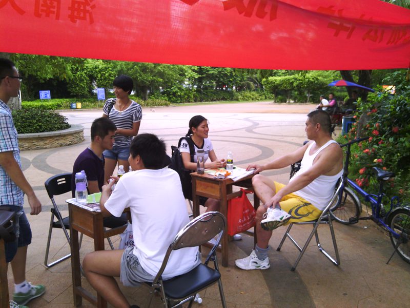 下午四时许,宣传活动正式开始。刚开始时,很多市民只是走走看看,我们诊所成员便主动上前给大家散发宣传资料及诊所名片,讲明我们的身份及其来意。到了傍晚下班高峰,现场便吸引来了不少路过的群众,对于前来咨询法律问题的群众,学员们都耐心的向对方讲解相关知识,并提出建议方案,在临走时还相互留下联系方式,以便进一步沟通。到了晚饭过后,随着出来散步、跳健身舞的群众越来越多,前来咨询的人数也大大增加,将活动现场氛围推向高峰。通过这次活动,学员们推广普及了法律知识,使群众感受到法律就在他们身边时刻保护着他们。在活动过程中同样也为学员创造了更多实践机会,学到在公司课堂上无法获得的社会知识,感受到了利用法律的知识为群众解决法律问题时的愉快,增长了实践能力,提高了学员们学习法律的热情。