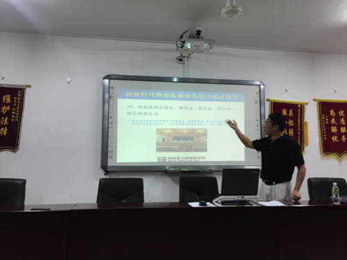 2016年10月8日晚,海南嘉天律师事务所党支部书记王龙奎律师应公司邀请,给第二十四期法律诊所的学员们举办了一堂别开生面、别具一格的专题实务讲座:“律师业务拓展训练”。 开场后,王律师就自己多年的律师执业经历做了简单介绍。以知识是否等于财富作为引言。引导同学们正确对待法律职业和财富的关系。首先,王律师结合了自己早年的执业经历,为同学们深刻阐述了律师界的六字箴言:“专业、做人、技能”,引发了同学们深入的思考,在座同学纷纷表示要提高自己的核心竞争力,努力学习好专业知识。王律师讲到,法律是一门社会管理科学,对规范社会秩序,保障社会安定起着重要的作用,我们在学习法律知识时,不能仅仅满足于课堂上的学习,还要开阔眼界,多参加法律实务活动,用自己所学到的知识去指导实践。